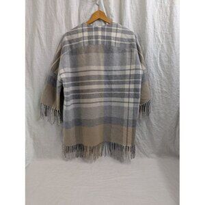 Helene London women's size Large plaid wool acetate blend jacket with fringe neutral color scheme