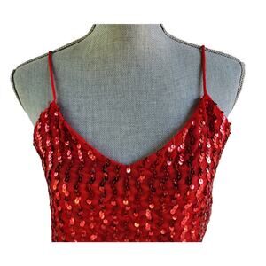 Helene Sidel Vintage 90s Red Sequin Camisole Top sz 8 Party Y2K
