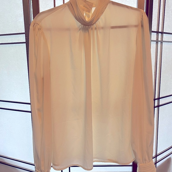Vintage blouse with mini pleated neckline and cuffs. No size tag but measure like a Large PTP 22