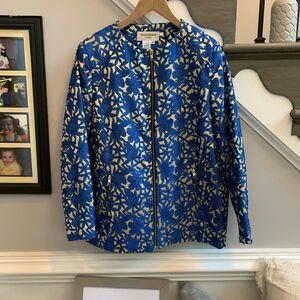 Helene Berman Blue & Gold Sparkle Zip Up Jacket sz M EUC
