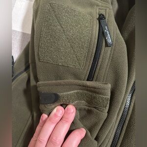 Heavy tactical fleece with patch support on sleeves. Very cool, heavy and warm. Lightly used, very good condition with no significant flaws noted