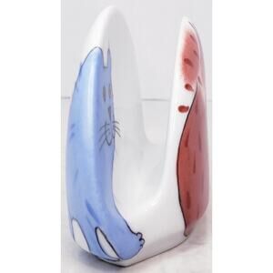 ? Helina Tilk Handpainted Ceramic Napkin Card Holder Dog and Cat~ Signed in VGUC
