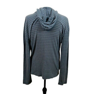 Helix Blue Hooded Top Women Small Striped Long Sleeve Lightweight Pullover