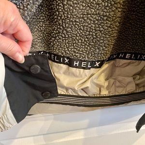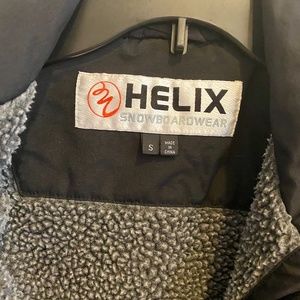 Hit the slopes with this Helix Ski Jacket, Size S, EUC. Nylon ski jacket is black with pink detail. Fully lined with fleece and interior closure for added protection from wind/wet. Does not have hood. Velcro closure cuffs and lots of pockets for storage. This is the jacket you want with you on the slopes! Measures: 20" arm pit to arm pit and 25 1/2" length.