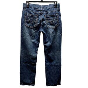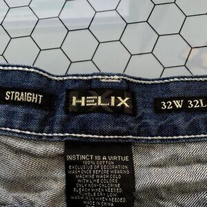 Helix Jeans Mens 32x32 Actual 34x32 Straight Whisker Front Medium Wash Y2K Denim