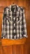 Plaid pattern is black, grey, and white, with a very subtle plum color