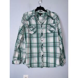 Helix Men's Plaid Athletic Fit Button Up Shirt Long Sleeve Green White Size XXL
