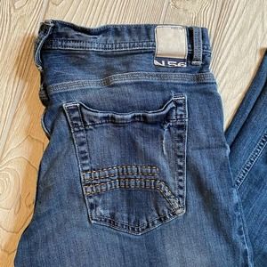 Helix N56 Loose Straight Jeans Mens 34x30 Med Wash Stretch Distressed.