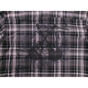 Helix Shirt Youth Medium Gray Plaid Western Causal Guitar Print Classic Button