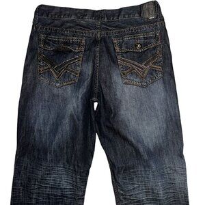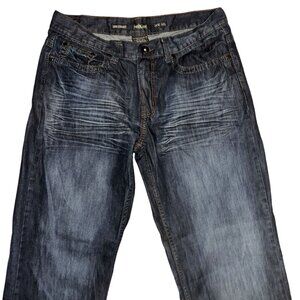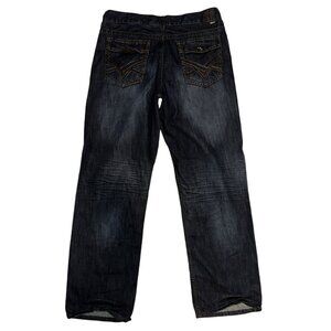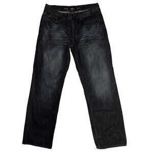 Helix Straight Leg Loose Jeans Mens 34 33 Dark Wash Logo Denim Embroidered