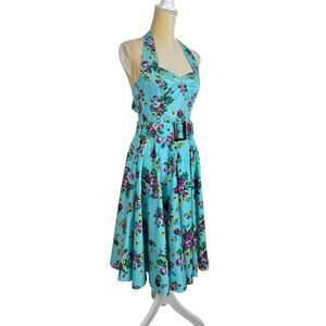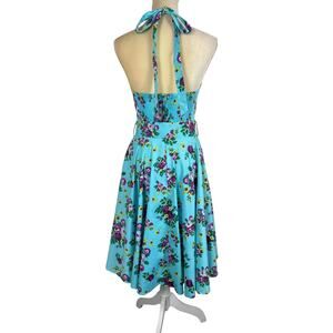 Hell Bunny Blue Floral MayDay Pinup Swing Dress XS Rockabilly Retro 50s Pin-Up