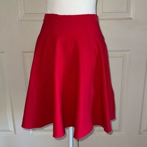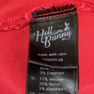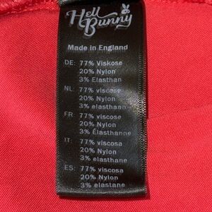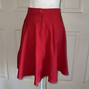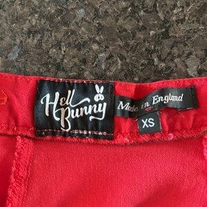Hell Bunny made in England red retro pinup style circle skirt. Button and zipper closure. Size XS. 13” waist across top laid flat. 20” waist to hem. Good pre owned condition