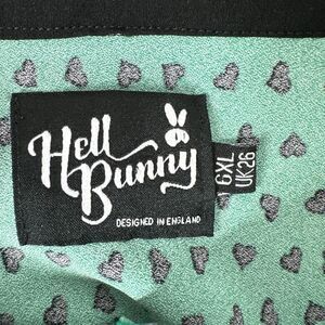 Hell Bunny Shirt Top Womens 6X Kelly Green Hearts Goth Grunge Button Stretch
