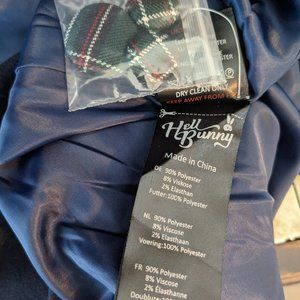 Fully lined, navy with green tartan detailing, detachable tartan bows!