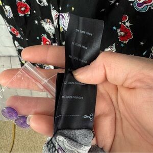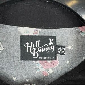 Hell Bunny Unicorn Print Puff Sleeve Button Down Shirt