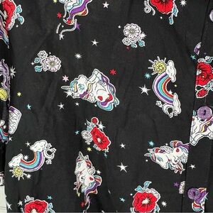 This elegant top from Hell Bunny features a charming puff sleeve design and a classic peter pan collar. The button-down style is accentuated by its crisp white and vibrant red colors, making it a versatile addition to any wardrobe. Unicorn Print. Smoke free home.