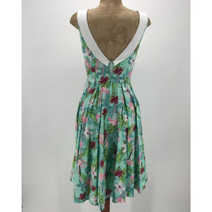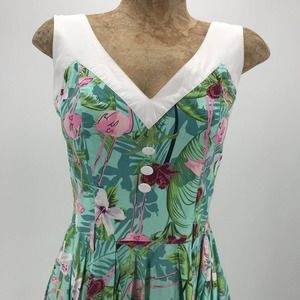 Hell Bunny Vixen Dress Womens XS Flamingo Tropical Fit & Flare V Neck Retro Flaw