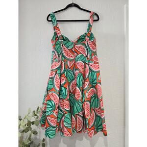 Hell Bunny Watermelon Print Summer Dress 4XL Cotton Stretch Fit & Flare