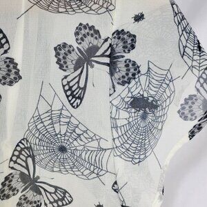 Hell Bunny White Black Fit & Flare Dress Spiderweb Butterflies Sz SM