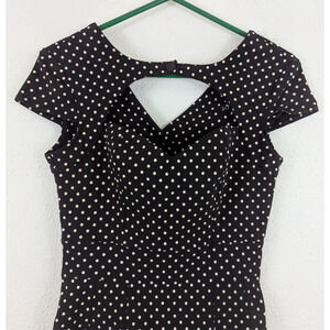 Hell Bunny sz XL Vixen Pin Up Retro Dress bodycon black & polka dots 1365