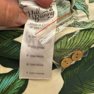 Hell Bunny Rainforest 70s Jumpsuit Wide Leg Cropped Tropical Leaf Size Small