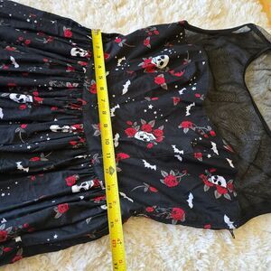 Hell Bunny Black Dress with Red Rose and Skull Pattern Size XL Wimsigoth