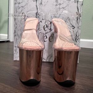 Brand new in original box, never worn rose gold 8'' stiletto size 7 dance heel with clear plastic straps