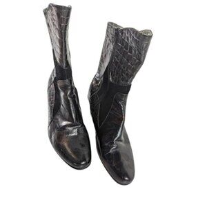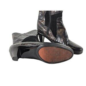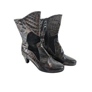 Helle Black & Brown Mixed Suede & Croc Embossed boots booties size 8
