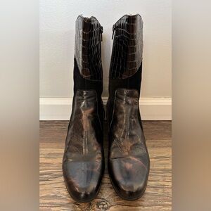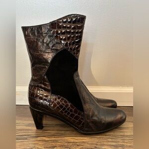 Helle Comfort Laine Boots Size 40 EUR (9-9.5 US) Croc Patent Leather Suede