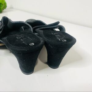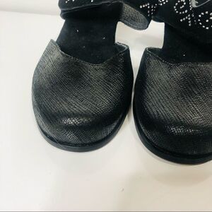 Helle Comfort Black Leather Rhinestone Strap Mule Heels