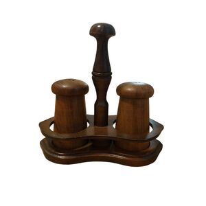 Hellerware wooden salad set serving bowl small bowls shakers salt pepper VTG