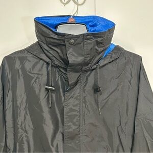 Good preloved condition Helley-Tech Helley-Hansen Men size Medium Waterproof Breathable Hiking Utility Packable Jacket. Adjustable drawstring, large front pockets, hideaway hood, and elastic cuff on sleeves. Slight wear on zipper and pin size hole on lower front jacket as seen in photo.