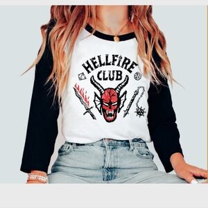 Hellfire Club Distressed Retro Baseball Raglan Tee