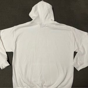 Super cute white hooded “Hello 50” sweatshirt with sparkly pink lettering. Sweatshirt is Gildan brand and size large (generous sizing-men’s, I think). Sweatshirt was worn twice, so it is in like new condition. From a smoke/pet free home.