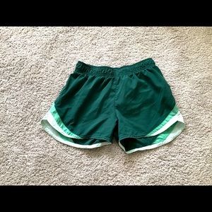 Shoppers these are sport shorts the brand is old navy the size is 10-12 it has three different times of green the condition is perfectly fine it was barely used 💚