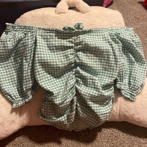 Green and white blouse