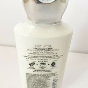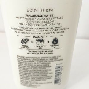 Fragrance notes: white gardenia, jasmine petals, magnolia blossom, pink nectarine and cotton musk.