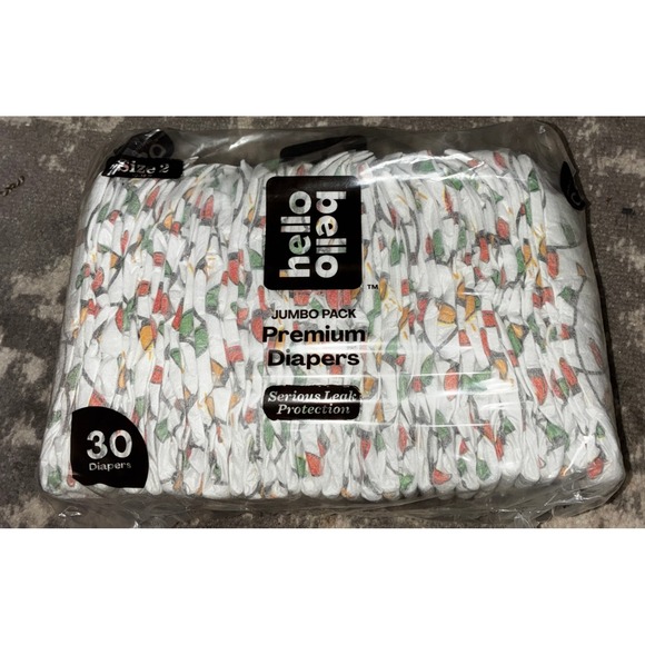Reliable 12-hour leak protection: provides dependable protection against leaks for up to 12 hours. They feature a super soft and absorbent protection. They are curated for boys, girls and are gender neutral. They are made without chlorine, artificial fragrance, phthalates, parabens, latex, and lotion. These Hello Bello diapers features a pattern a of Christmas lights. They are size 2 12-18lb. The count is 30. The package is sealed. They come from a non-smoking home.