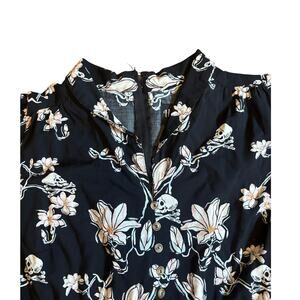 Hello Bunny Black Flower & Skull 3/4 Button Down Dress XL