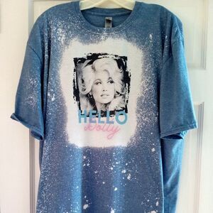 Hello Dolly Tour Graphic Tee Parton 2XL Gildan Softstyle Bleach Dyed Sublimation