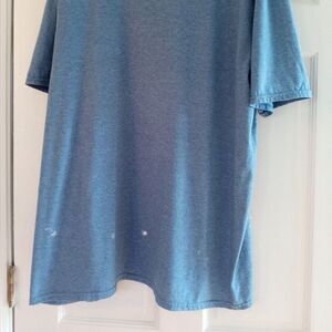 Y2K Gildan Softstyle XXL "Hello Dolly" tour, Dolly Parton image graphic, blue faded vintage look with factory splattered bleach spots.