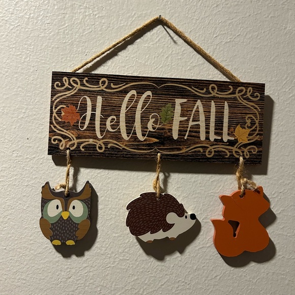 Hello Fall Hanging Sign - Owl, Hedgehog, Fox Dangles