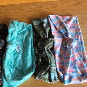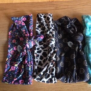 Set of five colorful patterned headbands from hello headband. Includes floral, animal print, smiley face, tropical, plaid, and striped designs. cheetah print is an older band and doesn't have the tag on it. all are in good condition, cheetah print one has more use. pet friendly home. can sell individually if needed.