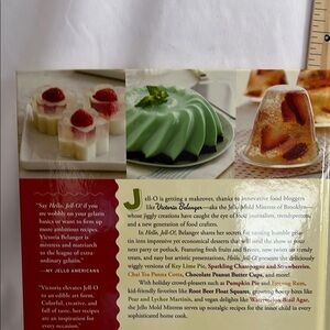 Discover 122 pages of inventive recipes for gelatin treats with the 'Hello, Jell-O!' book. Featuring a vibrant red and green cover, this book is perfect for adding a splash of color to your kitchen collection.