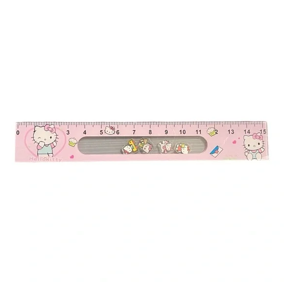 Adorable Hello Kitty pink ruler, featuring cute illustrations of Hello Kitty and friends! This 15cm (6 inches) ruler is perfect for adding a bit of charm to your stationery collection. Ideal for school, work, or as part of your Hello Kitty collection. Brand new and in excellent condition!