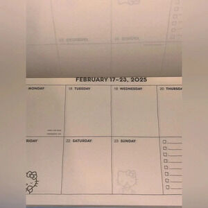 Brand new desktop 2025 Hello Kitty 17 month weekly calendar. Lovable images of Hello Kitty, ice cream cones, hearts and SO much more. This weekly calendar runs through the end of 2025. Calendars begin date was Aug 2024 so you can start using it as soon as you bring it home. Weekly design allows you to tear of the old weeks and start fresh with a blank page every week. Made by Sanrio. Brand new with tags.