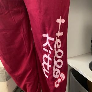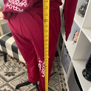 Brand new Hello Kitty jogger set, fits up to size medium, never been worn, no tags, material is soft, pockets in both sides of jacket, pockets in both sides of pants, comes from a smoke free household