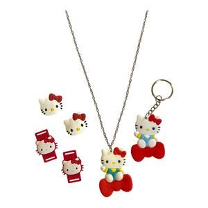 Hello Kitty Accessory Gift Set | Necklace, Keychain, Shoe Charms, Hair Clips Set