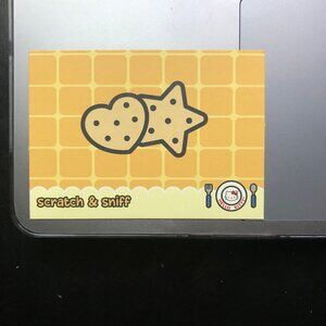 Adorable addition for any collector of whimsical sticker, trading cards, and/or fans of the super cute Sanrio Hello Kitty brand. The sugar cookie aroma of the scratch & sniff side of the card is still going strong after 10 years!