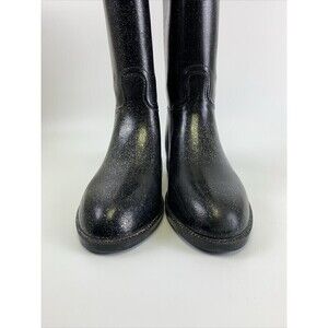 Hello Kitty Angelina Shimmer Rain Boots Black Glitter Pull On Knee High Womens 6.